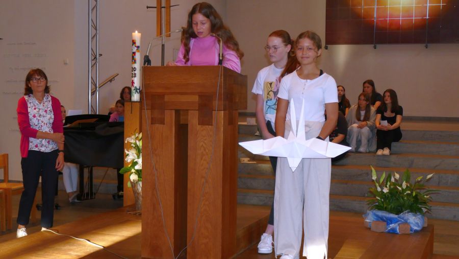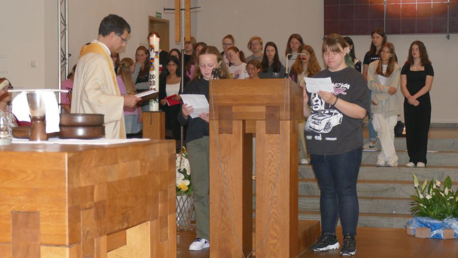 Dass sich die Schülerinnen einfühlten und auf die Gedanken des Gottesdienstes einließen, spürte man an ihrer Konzentration, aber auch an ihrem Interesse und Zuhören, als ihre Mitschülerinnen vom Ambo aus lasen, solo oder als Chor sangen.