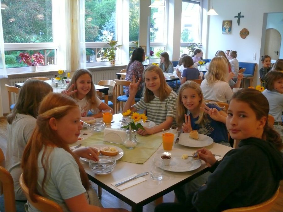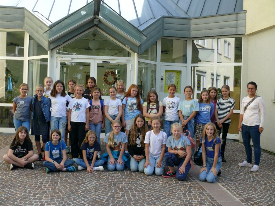 Früher als sonst, nämlich schon zwei bzw. drei Wochen nach der Einschulung, doch gerade zum richtigen Zeitpunkt – wenige Tage vor dem Schulgeburtstag – an dem die SMS ihr 78-jähriges Bestehen feiert, fanden für die 5 a,b,c,d die SMS-Tage statt. In den eineinhalb Tagen der sogenannten SMS-Tage kommen die neuen Schülerinnen dem Namen und dem Profil ihrer neuen Schule auf die Spur: Schönstatt (S), Maria (M), der Schule, ihrer Geschichte, ihrer eigenen Klasse und den Mitschülerinnen, mit denen sie sechs oder neun Jahre Schulgeschichte „schreiben“ werden.