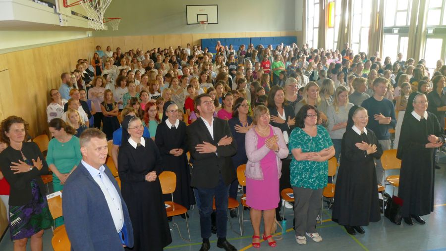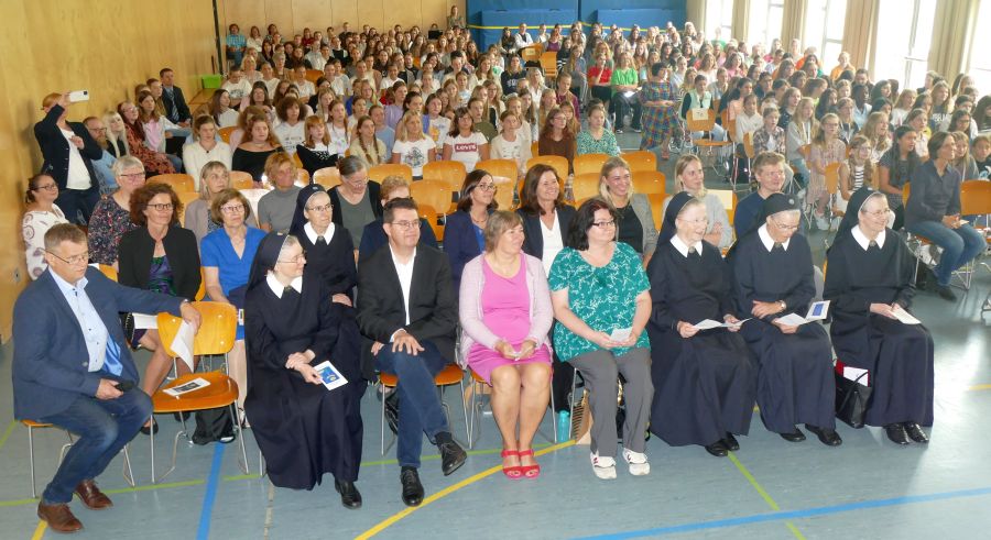 Am 29. September 2023 wurde Sr. M. Verena, die Leiterin der Realschule Plus, in ihren wohl verdienten Ruhestand verabschiedet. Nach dem festlichen Gottesdienst in der Pilgerkirche, der auch aus Anlass des Schulgeburtstages stattfand, hatte die Schulgemeinschaft ein buntes Programm für Sr. M. Verena vorbereitet, das auf ihren Wunsch hin unter dem Motto „Garten“ stand.