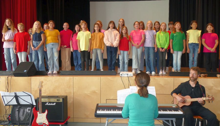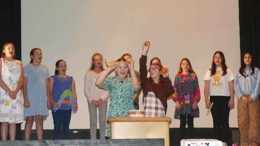 Weiter im Programm ging es mit einem lustigen „Vitamine-Cha-Cha-Cha“ der Singklasse 6b unter der Leitung von Frau Blatt.