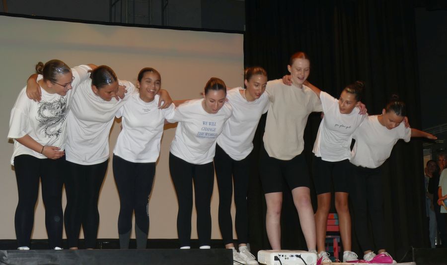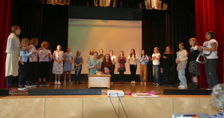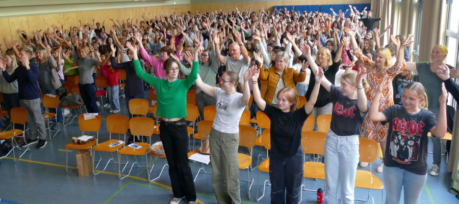 und über einen sehr schwungvollen Tanz, den einige Schülerinnen der Klasse 8b selbstständig eingeübt hatten.