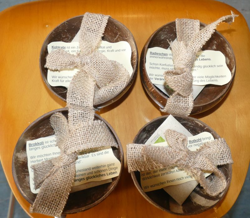 Einen ganz besonderen Dank sprachen die Schülerinnen des Wahlpflichtfachs Glück Sr. M. Verena aus, indem sie hervorhoben, dass diese immer ein offenes Ohr für alle Schülerinnen gehabt habe. Sie überreichten ihr Samentütchen für die Anzucht von verschiedenen Gemüsesorten.