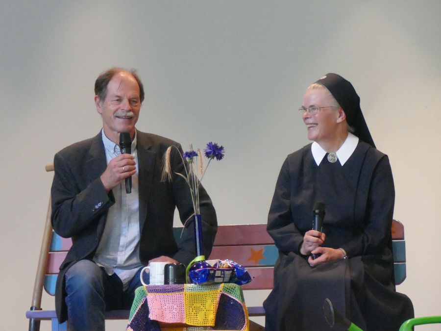 Dieses entpuppte sich dann als große Überraschung für Sr. M. Verena, denn nun betrat ihr Zwillingsbruder Wilfried Röhrig die Bühne und plauderte ein wenig aus dem Nähkästchen.