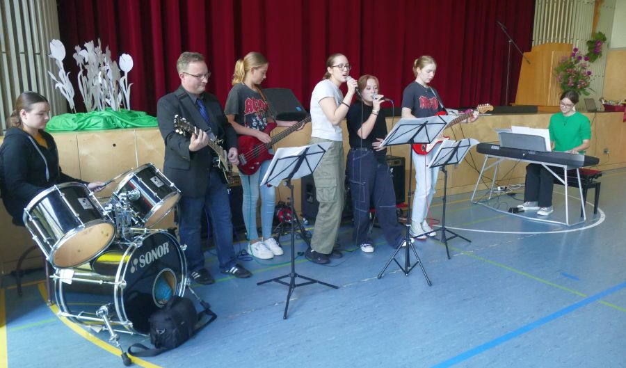 Die Schulband unter der Leitung von Herrn Bleyenberg beendete die abwechslungsreiche Feier mit einem Lied von Coldplay.