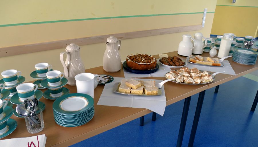 Besser hätte man es nicht sagen können: „Viva la vida!“ Es lebe das Leben! Auch das wäre ein passendes Motto für die Verabschiedung eines so positiven Menschen wie Sr. M. Verena gewesen. (Esther Jeuck) Nach dem Bühnenprogramm in der Aula machten sich die Festgäste auf den Weg in die Mensa. Nach dem Imbiss wurde weitergefeiert.