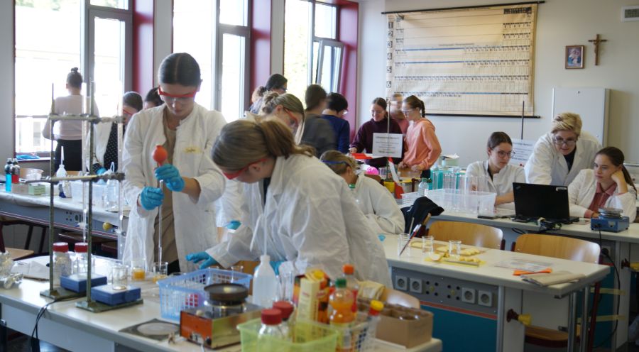 Großer MINT-Projekttag an der Schönstätter Marienschule am 02.10.2023 · 3. Oktober 2023Am Montag, den 2. Oktober 2023 fand an der Schönstätter Marienschule in Vallendar ein aufregender MINT (Mathematik, Informatik, Naturwissenschaften, Technik) Projekttag statt, der den Schülerinnen die Gelegenheit bot, ihre Begeisterung für diese Fächer zu vertiefen und praktische Erfahrungen zu sammeln. Die Schülerinnen der 5. Klassen waren im Klassenverband unterwegs und untersuchten die Mathematik im Mathematikum, sammelten Erfahrungen im Schulgarten und untersuchten Schmetterlinge. Die Schülerinnen der 6. Klassen flogen hinaus ins Weltall und hatten ihren Astronomie-Projekttag mit dem mobilen Planetarium, dem Sternenweg uvm. Die Schülerinnen der Klassenstufen 7-13 durften sich in unterschiedliche Workshops einwählen. Diese Angebote und Aktivitäten waren vielfältig und boten für jeden Geschmack etwas. Unter anderem konnten die Schülerinnen an Workshops zur Programmierung von Robotern oder zum Umgang mit der hausinternen Technik teilnehmen, im schuleigenen Fotolabor arbeiten, den richtigen Umgang mit eigenen Kameras erlernen, kreative Bienenhäuser für den Schulhof bauen, Solarmodelle zusammenbasteln und Solarlampen löten. Diese praktischen Übungen vermittelten den Mädchen nicht nur technisches Wissen, sondern förderten auch Teamarbeit und Problemlösungsfähigkeiten. Die Biologieprojekte zu den Themen “Igel” und “Zoo-Artenschutz” boten den Schülerinnen spannende Einblicke in die Tierwelt und den Naturschutz. Im Igelprojekt erforschten die Schülerinnen die Lebensweise von Igeln, bauten Nistkästen und setzen sich für den Schutz dieser Tiere in ihrem Lebensraum ein. Im Zoo-Artenschutzprojekt lernten sie die Rolle von Zoos bei der Erhaltung gefährdeter Tierarten kennen und setzten sich mit Fragen zur Arterhaltung und den ethischen Aspekten des Zooschutzes auseinander. Diese Projekte fördern das Verständnis für einheimische Tierarten, den Schutz gefährdeter Arten und die Bedeutung des Erhalts der Artenvielfalt in unserer Welt. Sie sensibilisieren die Schülerinnen für Umweltthemen und fördern deren Engagement für den Naturschutz. Ein weiterer beliebter Workshop behandelte die Welt der Chemie. Hier hatten die Jugendlichen die Gelegenheit, chemische Experimente durchzuführen und spannende chemische Reaktionen im Bereich der Lebensmittel zu beobachten. Dies weckte nicht nur die Neugier der Schülerinnen, sondern verdeutlichte auch die praktische Anwendung von Chemie im Alltag. Ein Höhepunkt des MINT Projekttags war außerdem der Physik-Workshop zum Thema “Schwingungen im Orgelbau”. Hier erhielten die Schülerinnen einen faszinierenden Einblick in die Welt der Schallwellen und Schwingungen, wie sie im Orgelbau eine entscheidende Rolle spielen. In diesem Workshop lernten sie, wie die verschiedenen Bauteile einer Orgel so konstruiert sind, dass sie harmonische Schwingungen erzeugen und beeindruckende Klanglandschaften erzeugen können. Diese praktische Erfahrung ermöglichte es den Teilnehmerinnen, die Zusammenhänge zwischen Physik und Musik auf beeindruckende Weise zu verstehen und schärfte ihr Verständnis für die Bedeutung von Schwingungen in der Welt des Orgelbaus. Neben diesen Workshops gab es auch Aktivitäten im Bereich der Mathematik. Die Schülerinnen konnten auf der Festung Ehrenbreitstein an mathematischen Rätseln und Logikaufgaben arbeiten, die ihre mathematischen Fähigkeiten herausforderten. Ein Besuch an der Universität Trier ermöglichte ihnen aber auch den Uni-Alltag durch eine „Mathematikvorlesung“ kennenlernen. Aber auch dieSchule selbst wurde genauestens unter die Lupe genommen, weil ein Workshop sich mit der Vermessung der Schule beschäftigte. Das Thema Nachhaltigkeit kam ebenso nicht zu kurz. An der FH Höhr-Grenzhausen erhielten die Schülerinnen einen Schnuppertag zum Thema „Ceramic goes green“. Im Workshop „Ernährung und Klima“ wurden außerdem Probleme durch unser Essverhalten festgestellt und aufgedeckt, am Ende war das Ergebnis durch einen duftenden Kartoffelsalat abgerundet. Der MINT Projekttag bot den Schülerinnen des Weiteren auch die Möglichkeit, sich mit Studentinnen aus verschiedenen MINT-Bereichen auszutauschen, die über ihre Erfahrungen in den MINT-Fächern berichteten und die Schülerinnen ermutigten, ihre eigenen Interessen in diesen Bereichen zu verfolgen. Aber auch in berufsbezogenen Workshops an der Krankenschwesterschule erhielten die Jugendlichen Einblicke in die Pflegeberufe. Ein Workshop bei der Bundeswehr untersuchte verschiedene Proben unter dem Mikroskop und informierte über vielfältige Karrieremöglichkeiten, sowohl militärisch als auch zivil, und half bei der Berufsorientierung. Im Werkzeugbau-Workshop lernten die Teilnehmerinnen die Firma „Reuth“ kennen, erlernten praktische Fertigkeiten im Maschinenbau und erkundeten Karrierewege in der metallverarbeitenden Industrie. Diese Workshops trugen dazu bei, die beruflichen Interessen und Fähigkeiten der Schülerinnen zu fördern. Im Workshop über Informatik und Technik wurde der Einsatz von Künstlicher Intelligenz (KI) beleuchtet, wobei die Mädchen Einblicke in KI-Prinzipien und deren praktische Anwendung erhielten. Zusätzlich bekamen sie Einblicke in die Welt des Programmierens durch den APP-Inventor, die Welt des 3D-Scans und des 3D-Drucks sowie der digitalen Technologien. Auch wurde die Integration von iPads im Unterricht als pädagogisches Werkzeug thematisiert, um den Teilnehmerinnen interaktive Lernerfahrungen zu bieten. Dieser Workshop veranschaulichte die fortschrittlichen Technologien und deren vielfältigen Nutzen in Bildung und Technik. Insgesamt war der MINT Projekttag an der Schönstätter Marienschule in Vallendar am 2. Oktober 2023 ein großer Erfolg. Die Schülerinnen hatten die Gelegenheit, ihre Interessen in den MINT-Fächern zu vertiefen und ihre Fähigkeiten in praktischen Übungen weiterzuentwickeln. Unser besondere