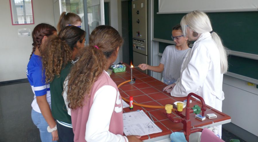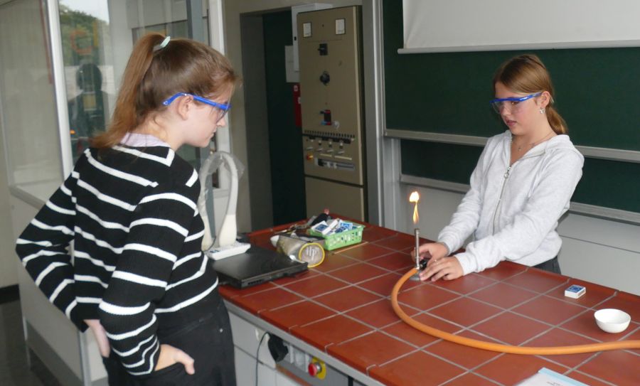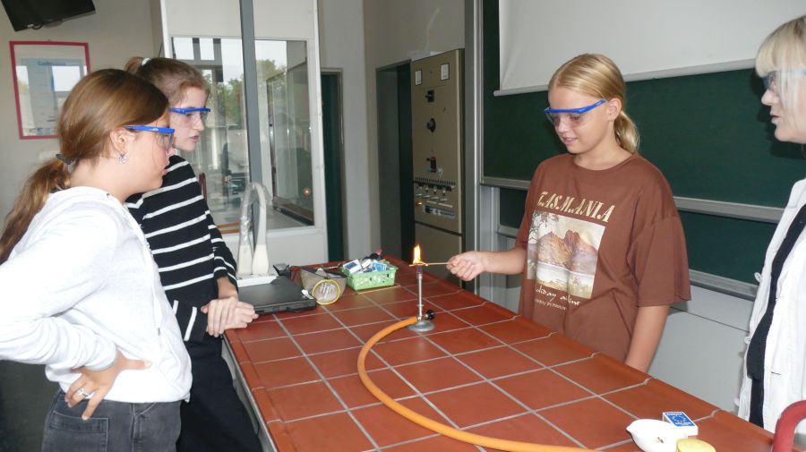 Momentaufnahmen vom Labortag · 2. November 2023Am 14.09.2023 studierten und experimentierten die Schülerinnnen der 6d sechs Schulstunden lang während ihres Labortages. Am Ende erhielten sie den “Bunsenbrennerführerschein”.