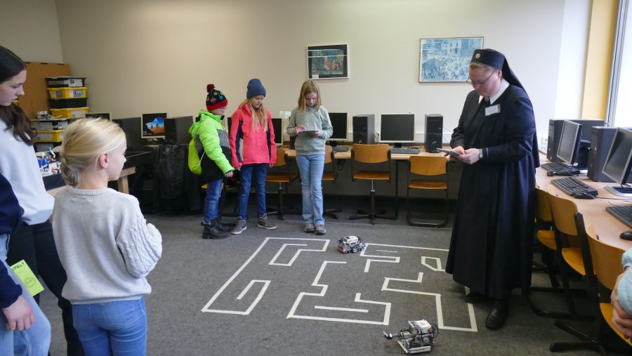 Tag der offenen Tür · 26. November 2023Am Samstag, den 25.11.2023 standen die Tore der Schönstätter Marienschule für alle Interessierte offen. Viele nahmen die Gelegenheit wahr, sich das Gelände und die Gebäude anzuschauen. Die Führungen, die von 9.00 bis 18.00 stattfanden, wurden von Oberstufenschülerinnen geleitet. Lehrerinnen und Lehrer sowie Schülerinnen boten Präsentationen in den verschiedenen Fachbereichen an. Es folgen einige Impressionen vom Rundgang durch die SMS: Herzlich willkommen! Begrüßung durch die Schulleiterin und die Orientierungsstufenleiterin