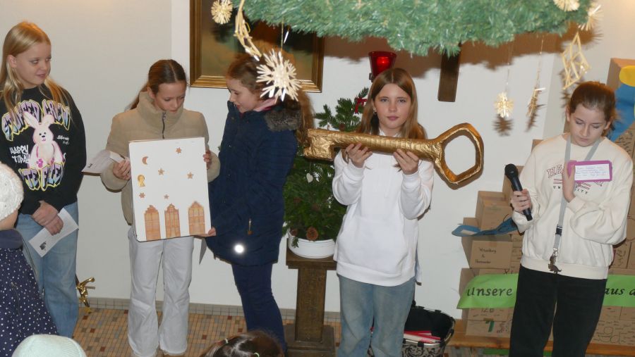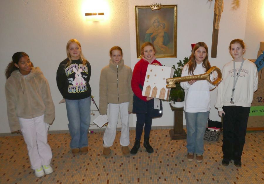 Dann brachten sie das Symbol des Schlüssels und ein selbst gebasteltes Adventskalendertürchen ins Spiel. Es gelte, nicht nur auf das Äußere zu achten, sondern die inneren Werte in den Mitschülerinnen zu entdecken, sich füreinander zu öffnen und das Herz auch für Jesus weit aufzumachen, der an Weihnachten zu uns kommen möchte.