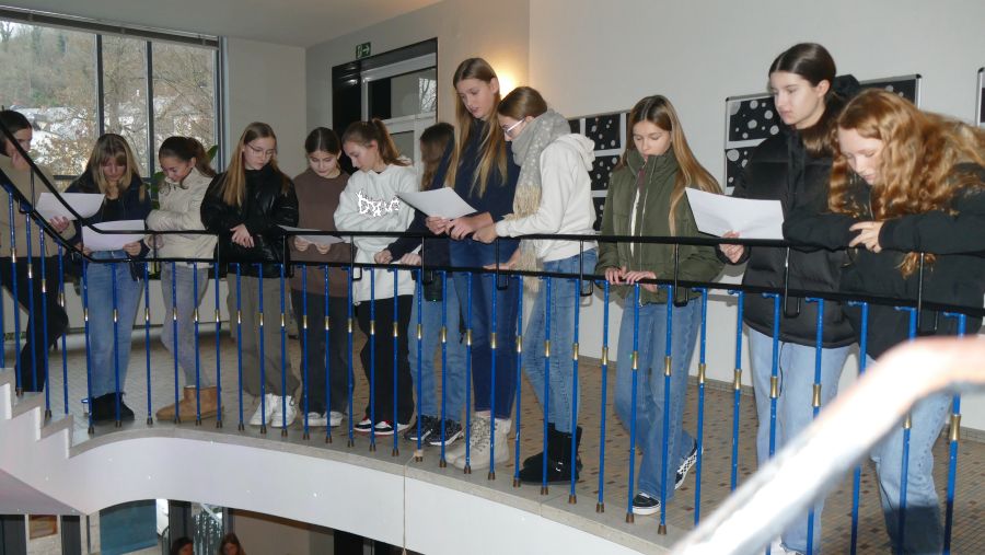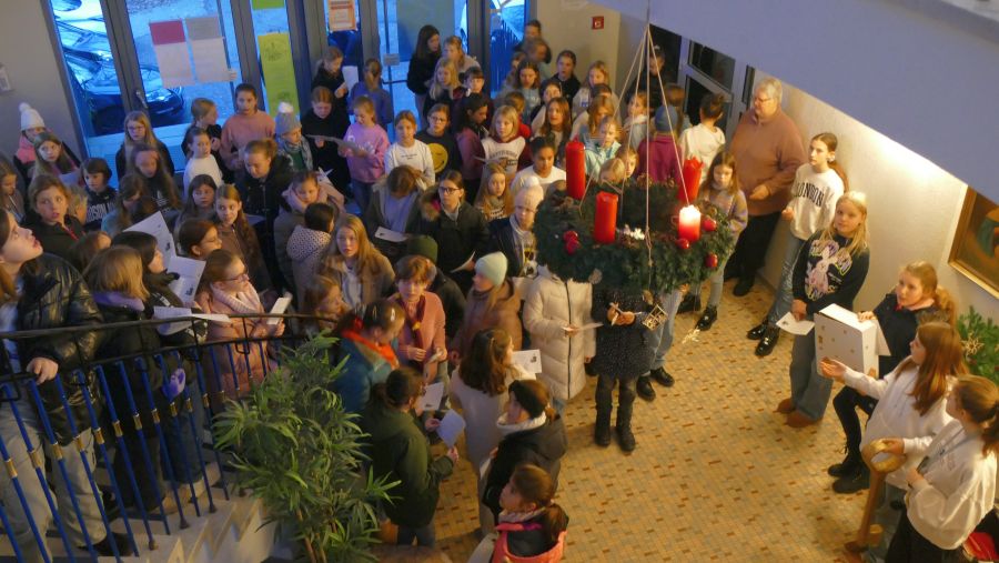 Dass eine besondere Zeit angebrochen ist, sieht und erlebt man in der SMS in diesen Wochen. Am Montag und Dienstag nach dem ersten Adventssonntag findet traditionell für alle Jahrgangsstufen eine Adventseinstimmung am Bacheingang der Schule statt. Die 5er und 6er waren am 04.12. in der ersten Stunde dran.