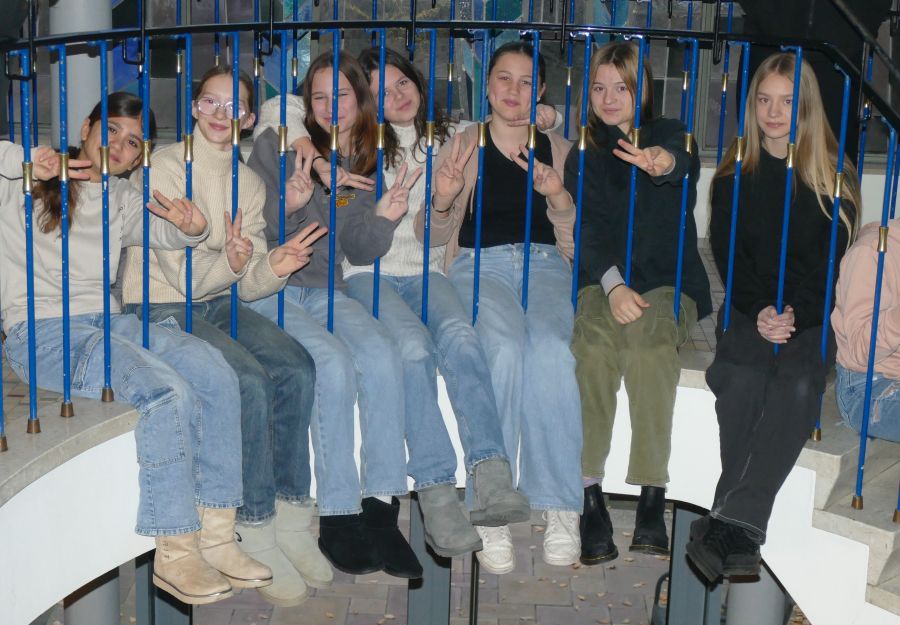 Bald danach nahmen die Siebent- und Achtklässlerinnen ihre Plätze ein. Die 8a hatte zusammen mit Frau Fölbach die Einstimmung für die Mittelstufe vorbereitet.