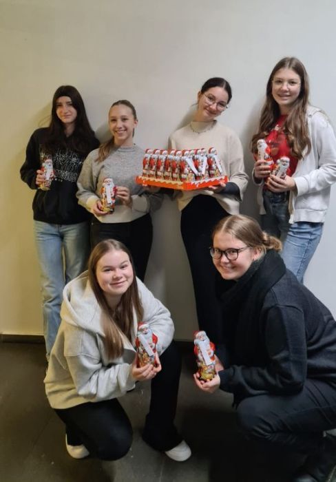 Pünktlich zum 6. Dezember, konnten wir von der SV wieder die alljährliche Nikolausaktion durchführen. Zuvor hatten die Schülerinnen die Gelegenheit, Nikoläuse bei uns zu bestellen, die wir dann am 06.12.2023 in die Klassen gebracht haben. Das eingenommene Geld können wir jetzt an unsere Partnerschule nach Burundi spenden. Über 90 Schülerinnen haben sich über einen Nikolaus gefreut! Wir danken allen, die auch dieses Jahr wieder mitgemacht haben und wünschen allen eine schöne Weihnachtszeit!