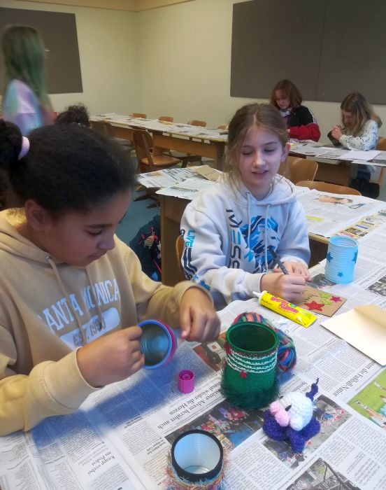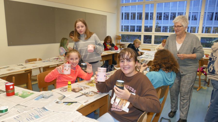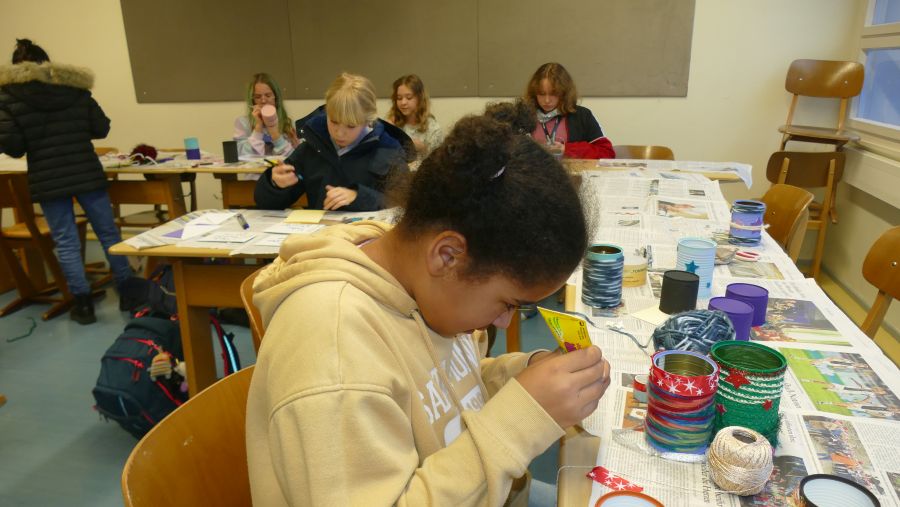 Adventszeit ist Kreativzeit · 12. Dezember 2023Garten-AG indoor Was macht eigentlich die Garten-AG in der Wintersaison? Passend zum Titel der AG, ist sie auch im Winter schöpferisch tätig. Am 12.12.2023 sah es im Kreativ-Raum von Frau Wenndorf und Herrn Dr. Wenndorf so aus: