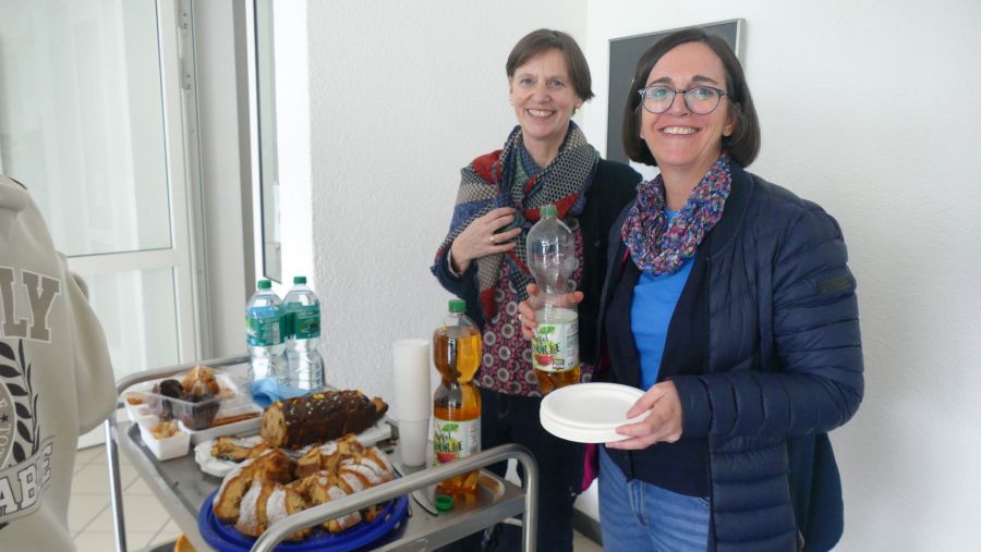 Zwischen den Spielen gaben Frau Overmann und Frau Hannuschke die bei den Gästen beliebte Apfelschorle aus und verteilten leckeren Kuchen, den die Gastfamilien beigesteuert hatten.
