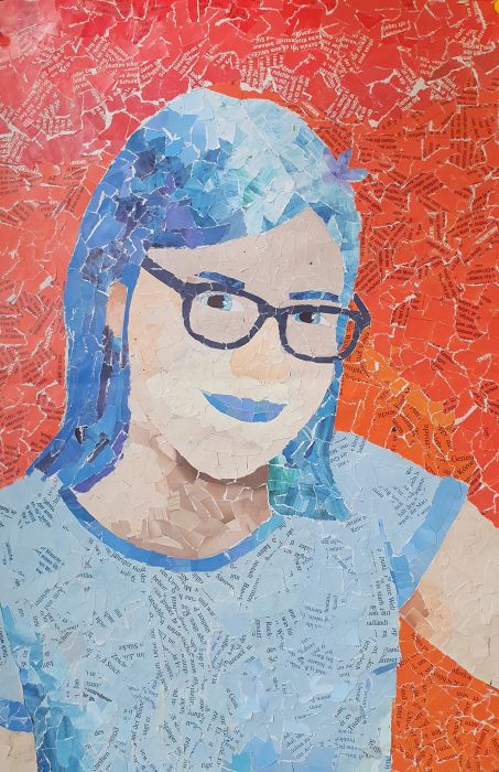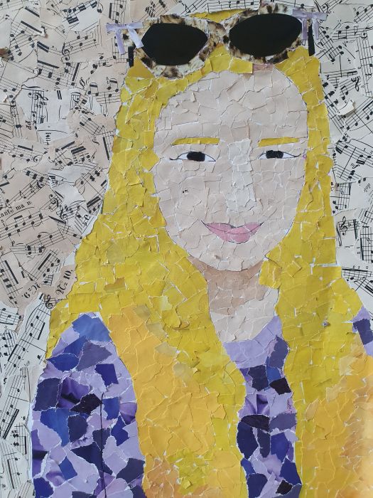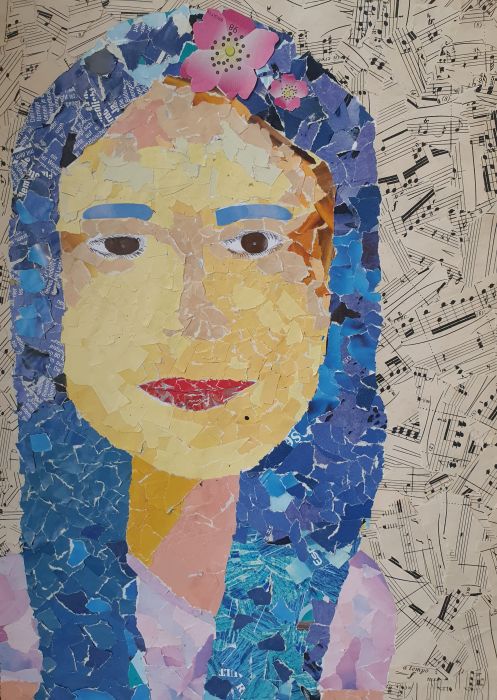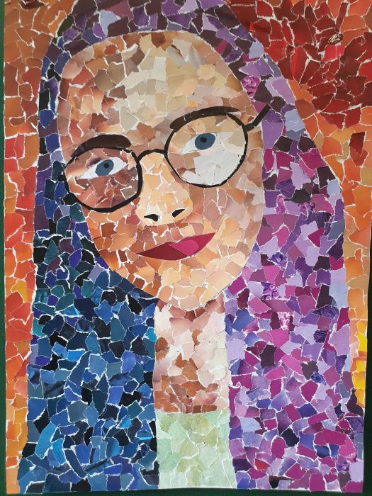 Herzlichen Glückwunsch, liebe Emilia für dein sorgfältig ausgearbeitetes Porträt! Die Einbindung des effektvollen Farbkontrasts, die gekonnte räumliche Darstellung durch die Einbeziehung verschiedener Farbabstufungen und die insgesamt sehr gelungene Gesamtgestaltung bringen deine kreative und humorvolle Persönlichkeit sehr gut zum Ausdruck! Bravo! Porträt Einer besondere Art der Porträtierung haben sich die Schülerinnen der 6d gewidmet. Wochenlang wurden geduldig Schnipsel in passenden Farbtönen und Größen gesucht, gerissen und/oder geschnitten.