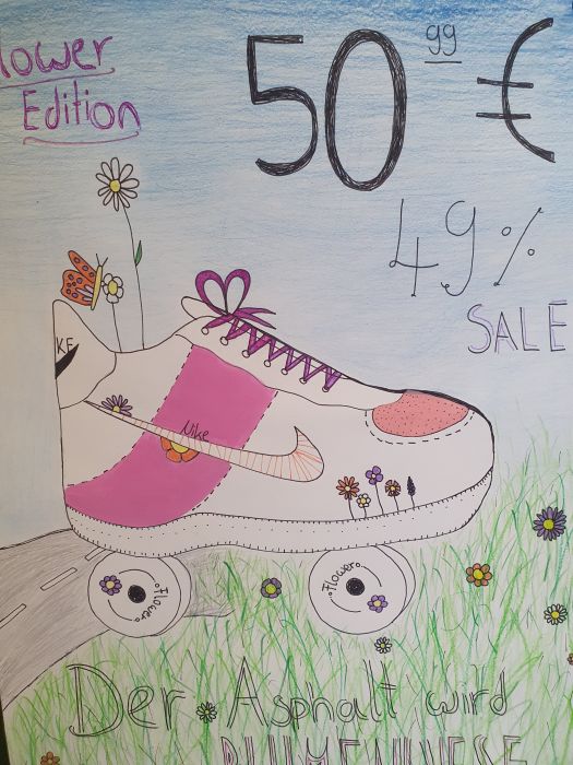 Die neue Schuhkollektion Die Schülerinnen der 5d begegneten dem Thema, indem sie sich zuerst mit ihren eigenen Schuhen auseinandersetzen. Nach verschiedenen graphischen Übungen zu Mustern und Hell-Dunkelabstufungen, zeichneten sie ihren eigenen Schuh möglichst realistisch ab .