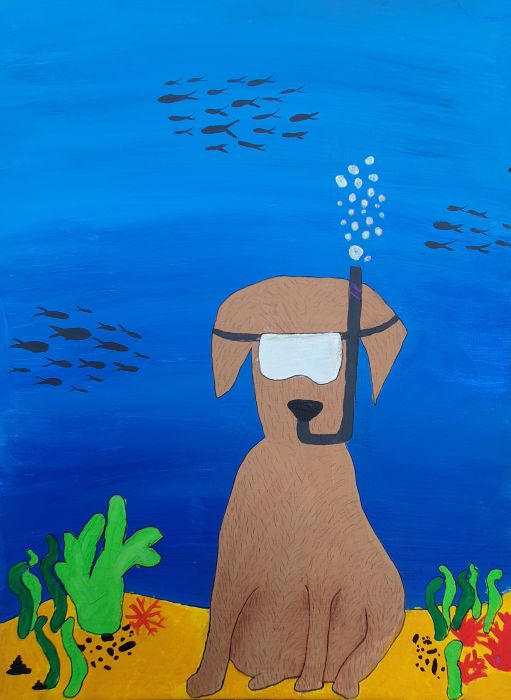 Aus den insgesamt sehr überzeugenden Porträts der 6d wurde zudem das Bild des Monats der Schülerin Emilia M. ausgewählt, das nun unter der neuen Rubrik „Bild des Monats“ erscheint. Mein Hund ist grün Nach zeichnerischen Übungen zu Fell-und Federstrukturen, einer anatomisch realistischen Umsetzung ihres Wunschtieres und Farbkontrastübungen haben, haben sich die Schülerinnen der 6d und 5c an eine phantastische Umsetzung gewagt. So entstanden Wunschtiere in einer ungewöhnlichen Umgebung und bei unerwarteten Tätigkeiten. Inspiriert wurden die Schülerinnen von dem Bilderbuch „Mein Hund ist grün“ von Pascal Biet. In dem Buch begegnet man einem Hund, der etwas anders ist, als alle andern und sich deshalb nicht mehr aus seinen vier Wänden traut. Als er es trotzdem wagt, wird sein Mut belohnt…