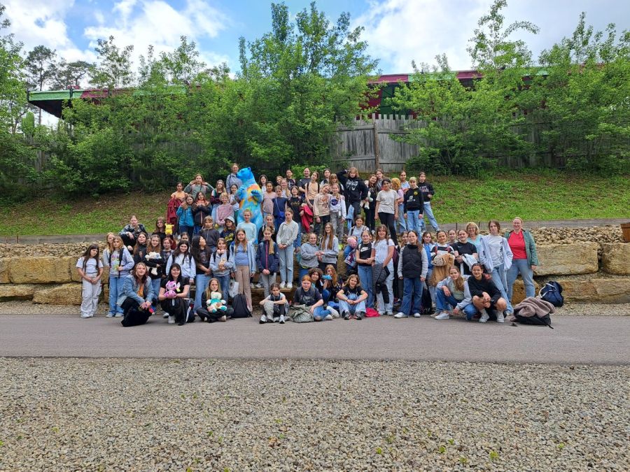 Einen rundum schönen Tag erlebten die GTS-Schülerinnen am 08.05.2024 bei ihrem Ausflug in den Eifelpark Gondorf. Vom Booster mit zwei frei schwingenden Gondeln in 50 m Höhe über die Wasserbahn und die Achterbahn bis zur Sommerrodelbahn – alles wurde begeistert ausprobiert. Zwischendrin konnte man verschiedene Tiere sehen oder im Streichelzoo ausgiebig auf Tuchfühlung gehen. Wir kommen gerne wieder!