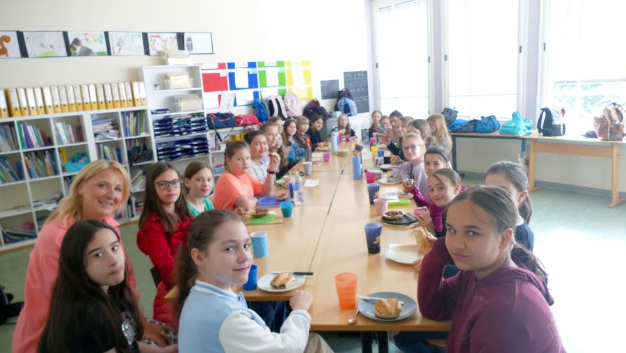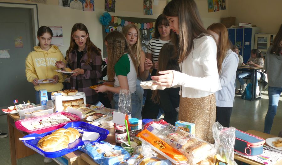 Die Klassen 5 bis 7 arbeiteten in verschiedenen Projekten zum Thema EU, wobei die Klassen-und Fachlehrerinnen und -lehrer ein vielfältiges und ansprechendes Angebot zusammenstellten. Für einige Lerngruppen begann der Tag mit einem gemeinsamen Frühstück mit Spezialitäten aus europäischen Ländern.