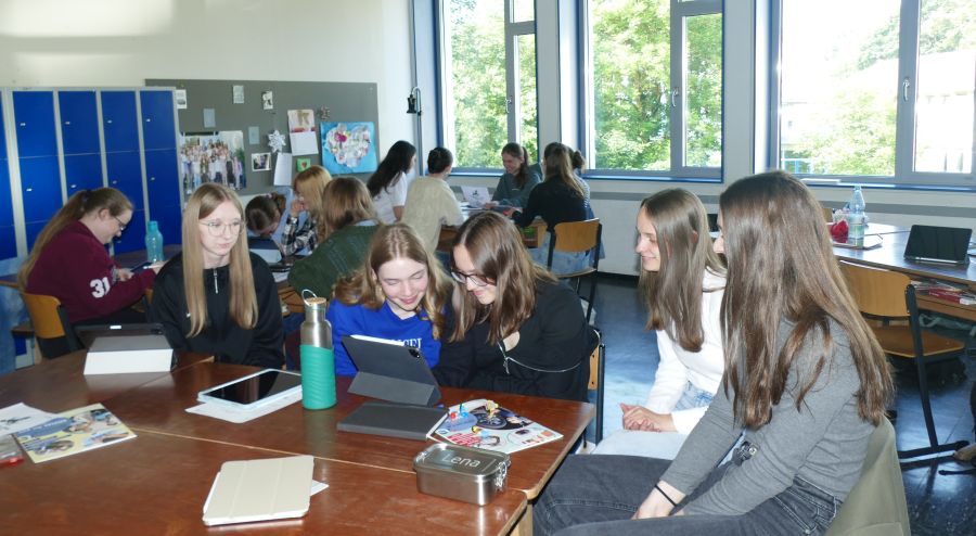 Eine andere 8. Klasse visualisierte die historische Entwicklung der EU. Die Schülerinnen erarbeiteten sich die historischen Wurzeln Europas und die Entwicklungsphasen zur EU nach dem Zweiten Weltkrieg, beschäftigten sich mit der EU-Menschenrechtscharta, nahmen die Parteien in den Blick sowie das Wahlrecht und reflektierten die Vor- und Nachteile der EU. Eine Lerngruppe recherchierte Ergebnisse zu bestimmten Fragestellungen zu den Parteien und der Europawahl und löste ein digitales Rätselspiel rund um die Wahl.