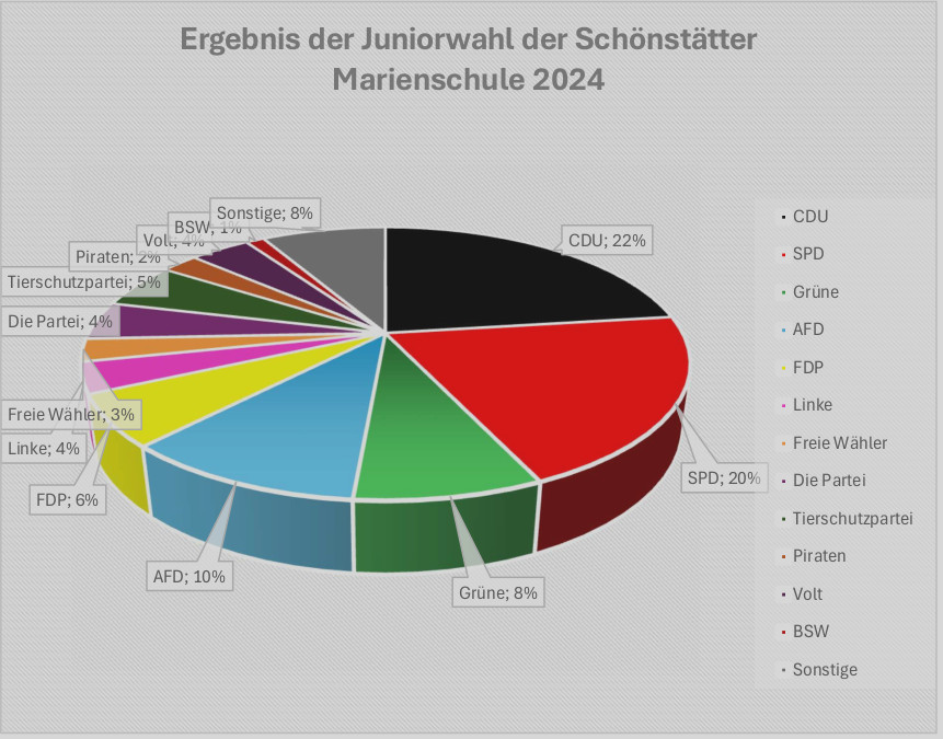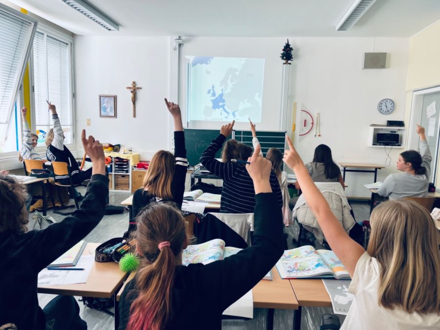 Europa- und Demokratietag an der Schönstätter Marienschule · 11. Juni 2024Es war bereits der zweite Eurpoatag, den die SMS als Erasmus plus-Schule am 04.06.2024 veranstaltet hat. Die gründliche Vorbereitung dieses Tages lag vornehmlich in den Händen der Sozialkunde- und Erdkunde- und Geschichtslehrerinnen und -lehrer. Alle Schülerinnen von der 5. bis zur 12. Klasse der Realschule plus und des Gymnasiums engagierten sich in Projekten und bei Veranstaltungen rund um die Themen „Europa“ und „Demokratie“.