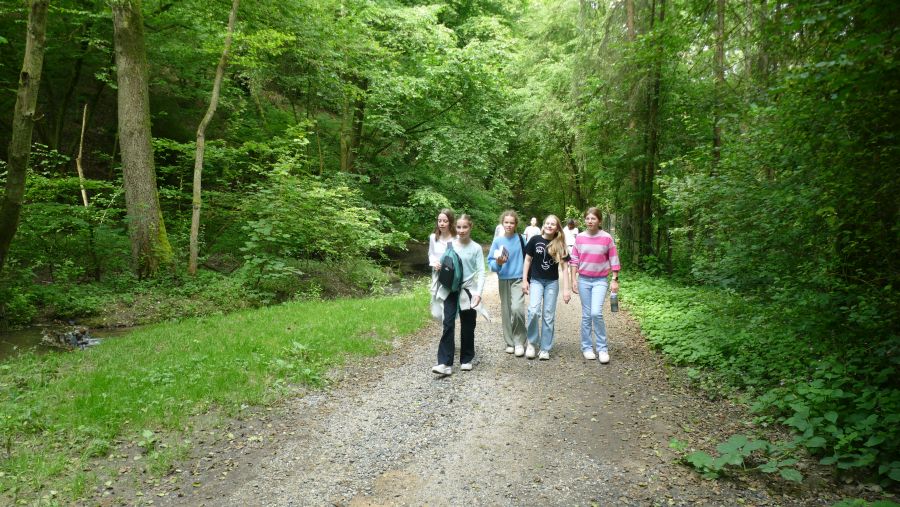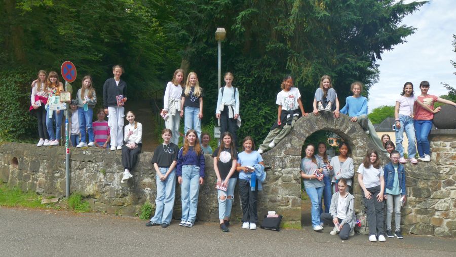 Am 18.06.2023, am Ende der Unterrichtsreihe, war es für die Schülerinnen der 6d an der Zeit, sich auf den Weg zu machen, wenn auch nicht auf den ganzen „Rheinischen Sagenweg“ zwischen Mainz und Düsseldorf, an Rhein, Lahn und Nahe – das wäre etwas für die Sommerferien –, so doch immerhin zum Handlungsort einer Lokalsage, dem Vallendarer Bischofsborn im Wambachtal.